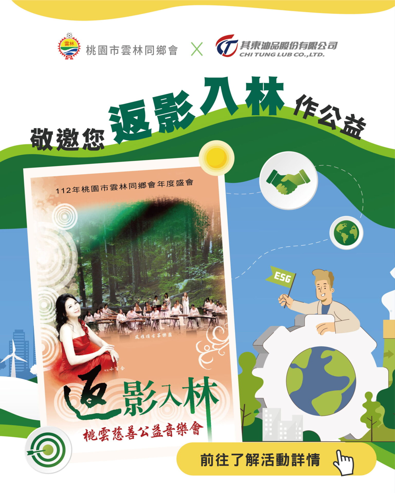 本公司為了落實,ESG企業永續發展之社會責任精神,參與了主要由《桃園市雲林同鄉會》與《文化部》及《桃園市政府》《雲林縣政府》共同主辦的《返影入林-桃雲慈善公益音樂會》活動,此次雖然是首次跨縣市地區,擔任協辦單位的輔助角色,但也加深了其東油品與地方社區公益計畫的深化關係,透過參與此公益活動,讓同仁與管理幹部們,可以發揮自身的愛心與貢獻己力,達到拋磚引玉的效果,同時又可讓企業永續發展與社會責任兼顧,用意在於取之於社會,回饋於社會,逐步邁向符合ESG永續的計畫與目標。