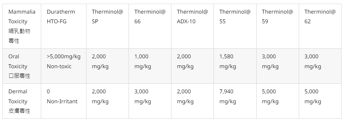 Duratherm HTO-FG 是環保、無毒、無害且不需特別報關標註的產品,對現場作業員身體無害且安全。