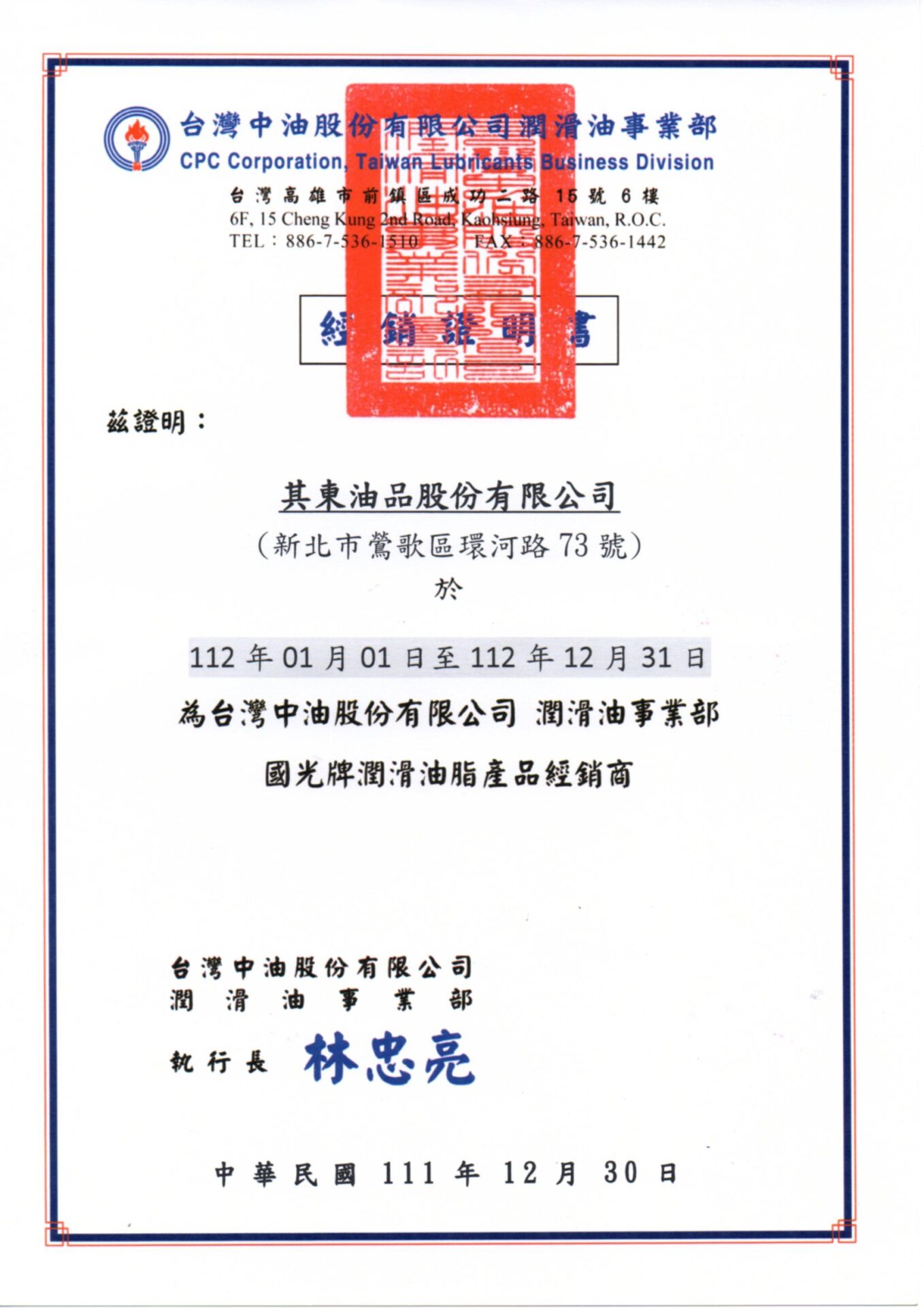 其東油品開業四十多個年頭,與台灣中油共享合作推廣販售-國光牌系列潤滑油,經銷服務品質優良,多次得到中油潤滑油事業部頒授獎項肯定,與此殊榮及證明,小編也在此分享給大家,所以購買國光牌-潤滑油系列商品找其東油品就對了!