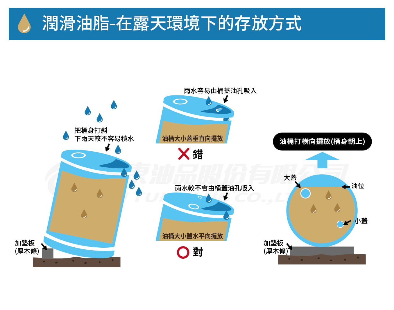 ● 開啟潤滑脂的桶蓋時候,最好也在室內,嚴防避免風砂、灰塵、或其他雜物混(飛)入潤滑脂桶內,用好需立即蓋好桶蓋,以免潤滑脂遭受雜質汙染,導致整桶潤滑脂因為雜質而受到損壞。