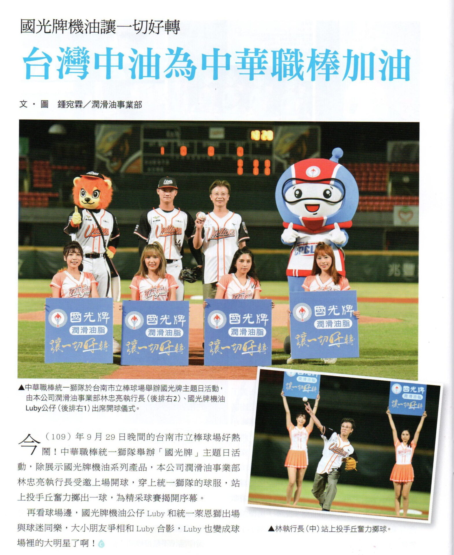 中華職棒統一獅,邀請國光牌潤滑油執行長及Luby公仔為比賽開球