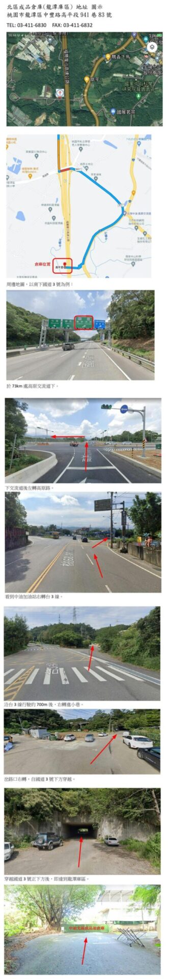 北區成品油倉庫將於111年06月01日起正式啟用營運,地址:桃園市龍潭區中豐路高平段941巷83號,電話:03-4116830。路線圖如下說明:
