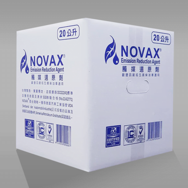 Novax觸媒還原劑(AdBlue® / DEF / AUS32)是一種無味無色的透明溶液,由 32.5% 工業尿素67.5% 的去離子水所合成。應用在現代廢氣污染控制系統中,簡稱為 SCR 系統(選擇性觸媒轉化器)。